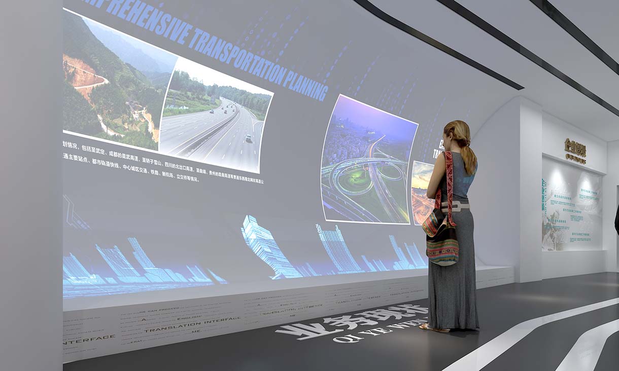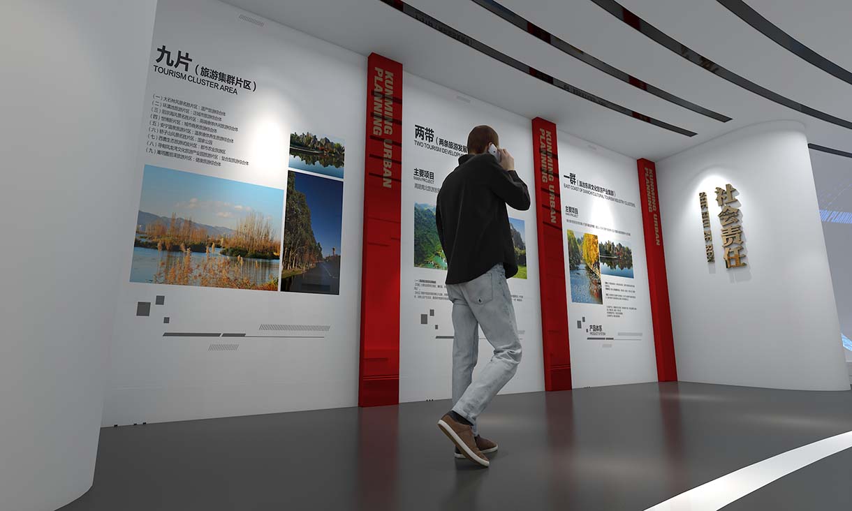 采用先進(jìn)的數(shù)字展示形式,企業(yè)展廳設(shè)計(jì)中產(chǎn)品的宣傳推廣方式上可采用先進(jìn)的數(shù)字化展示方法進(jìn)行展示,如:在展現(xiàn)先進(jìn)制造設(shè)備與前沿制造技術(shù)上。弧幕影院能更好的吸引參觀者的目光,尤其是當(dāng)它進(jìn)行場(chǎng)景重現(xiàn)時(shí),觀眾仿佛自己置身于現(xiàn)實(shí)的工廠中。這樣的呈現(xiàn)方式更深得人心,同時(shí)從側(cè)面也能展示出中紡集團(tuán)的企業(yè)實(shí)力。