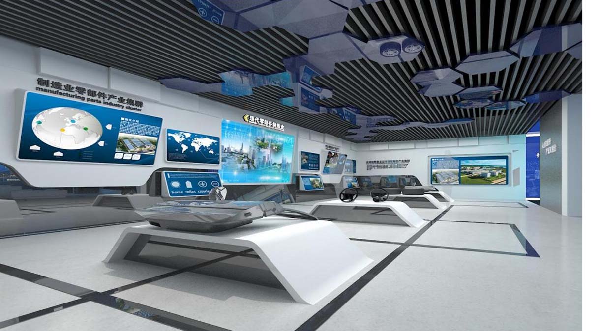 本項目中將采用多個LED顯示屏為內容載體,由PAD系統控制,可逐個點亮LED設備,展示園區各個時間節點的發展大事記,引導客戶逐個觀賞,最終匯集到園區愿景展望區。