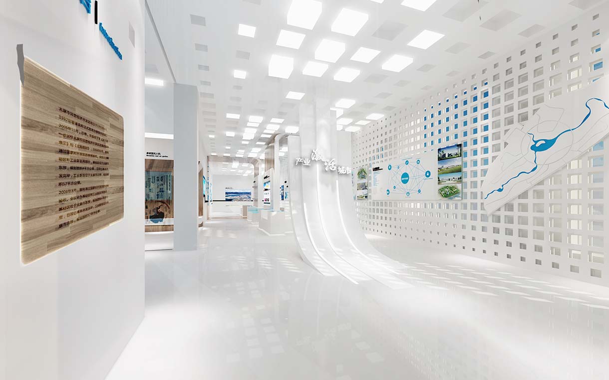 在空間設計上,設計師秉承簡約大氣的設計理念,充分結合了太原市產業結構與整體布局,著重強調展示太原市核心重點產品,配合合理的動線規劃,引導客戶自主參觀了解,以最直觀的方式展示太原民營經濟開發區優勢,傳遞展示理念。