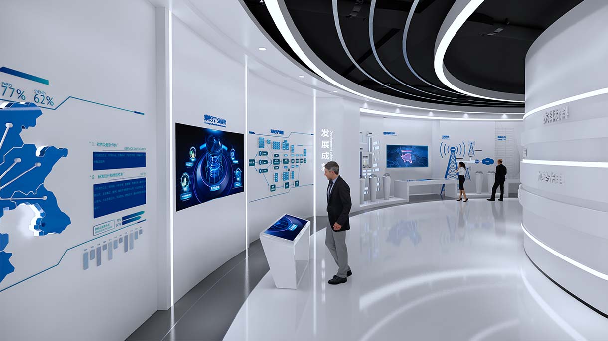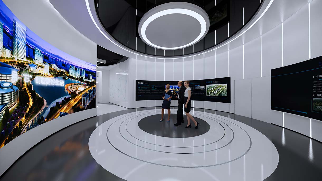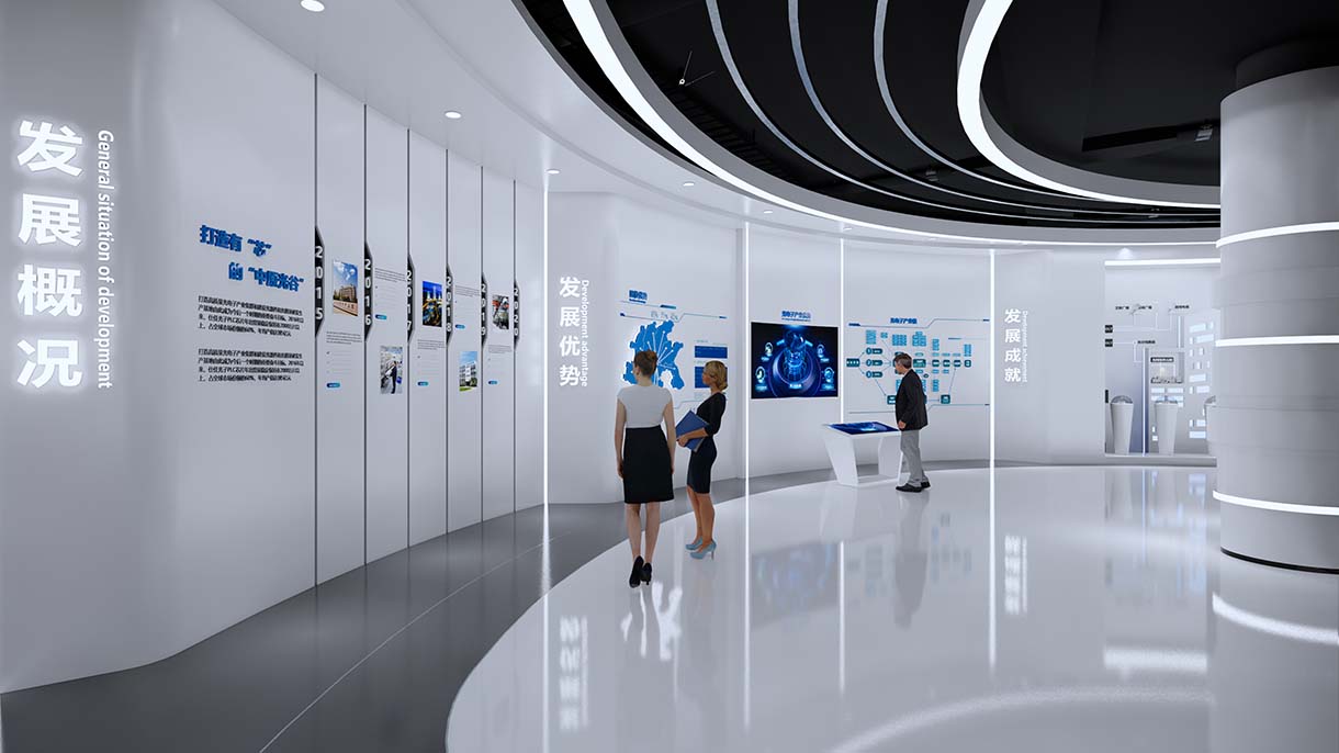 鶴壁開發區光電子規劃展廳定位為:“科技、智能”,本次設計將利用物聯網、云技術及人工智能,展現鶴壁現代化科技家園建設規劃,因地制宜,匠造一方沃土。