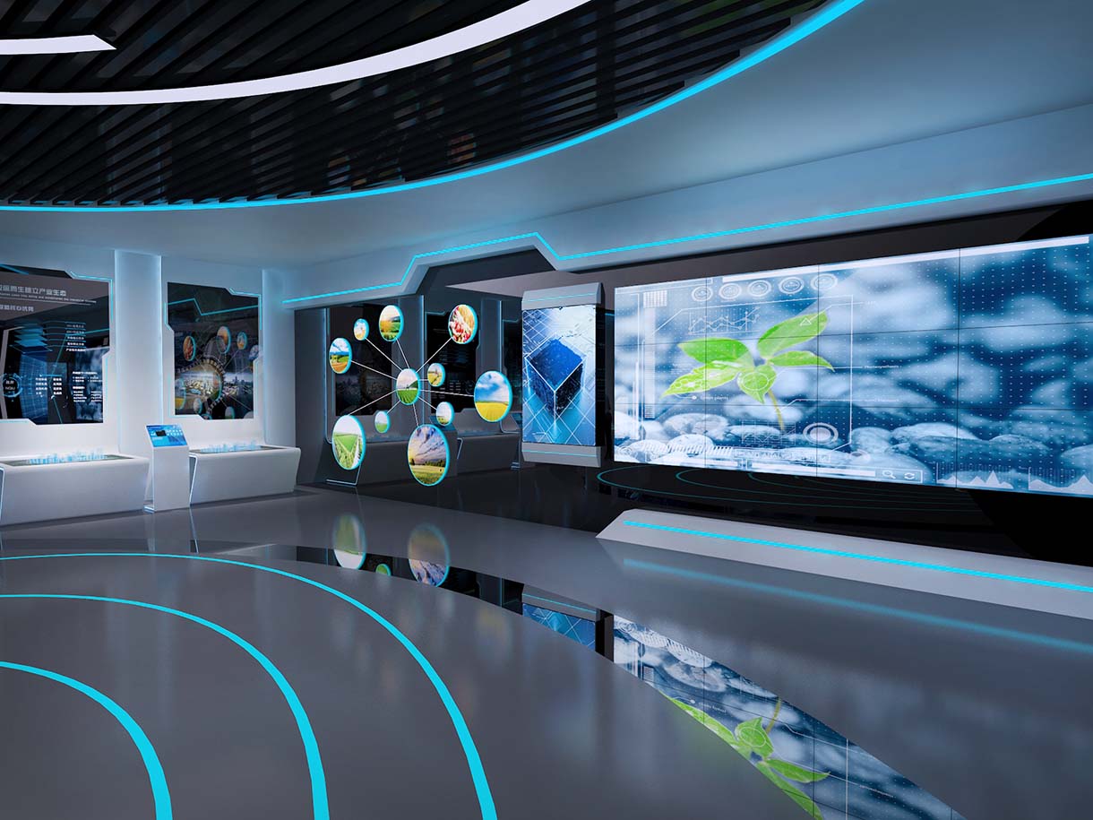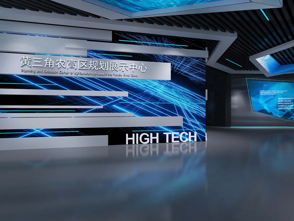 展廳設計策劃思路:展示中心設計時需注重展廳空間的主題風格統一,打造具有時代性、對外開放的展示空間;同時展廳的功能布局和流線設計要科學合理,強調各功能分區的交通流線組織,使其能突出黃三角農高區優勢特色和核心競爭力,成為有利于資源集中利用的整體,打造出具有生態效應的建筑環境空間。