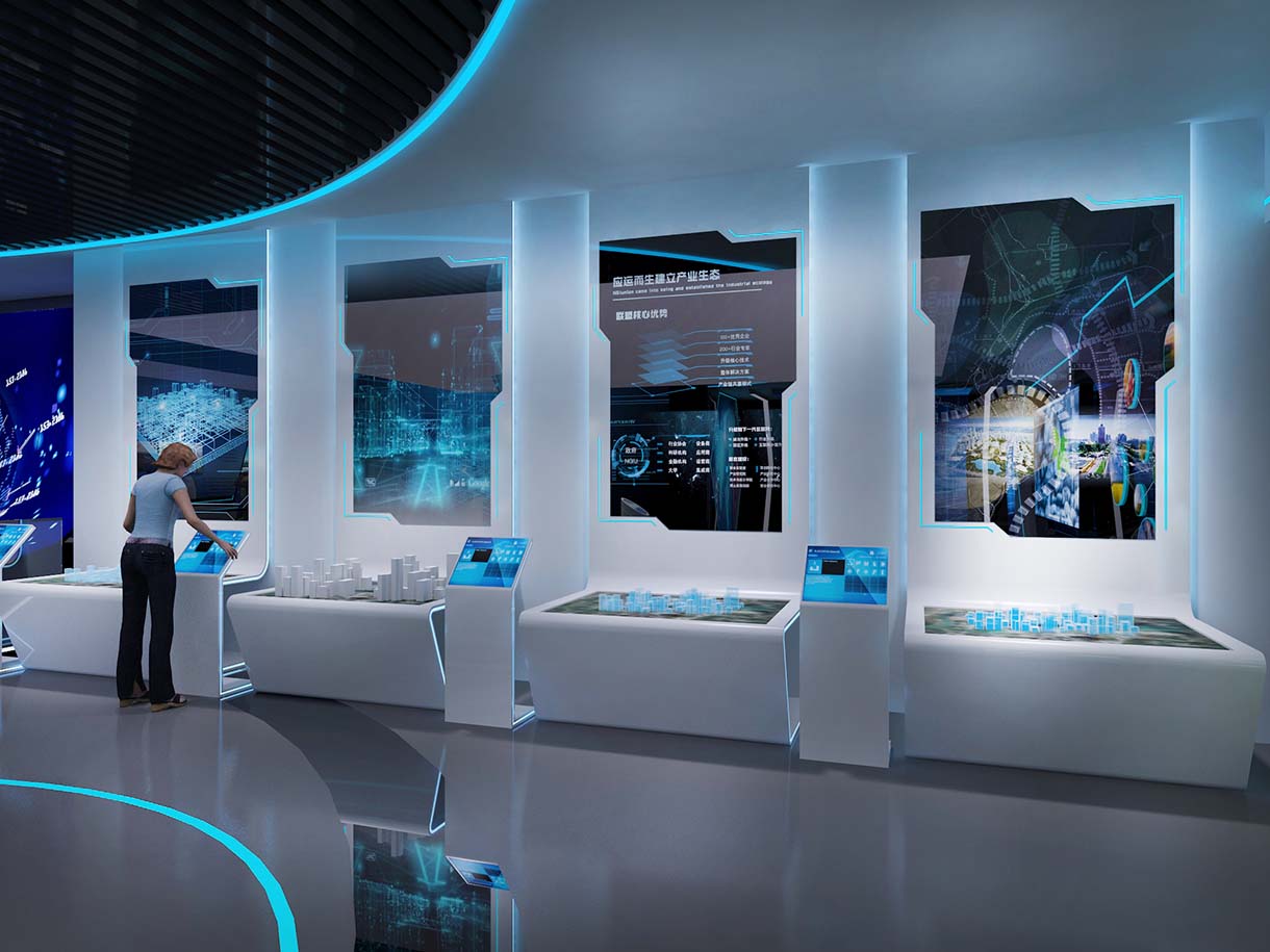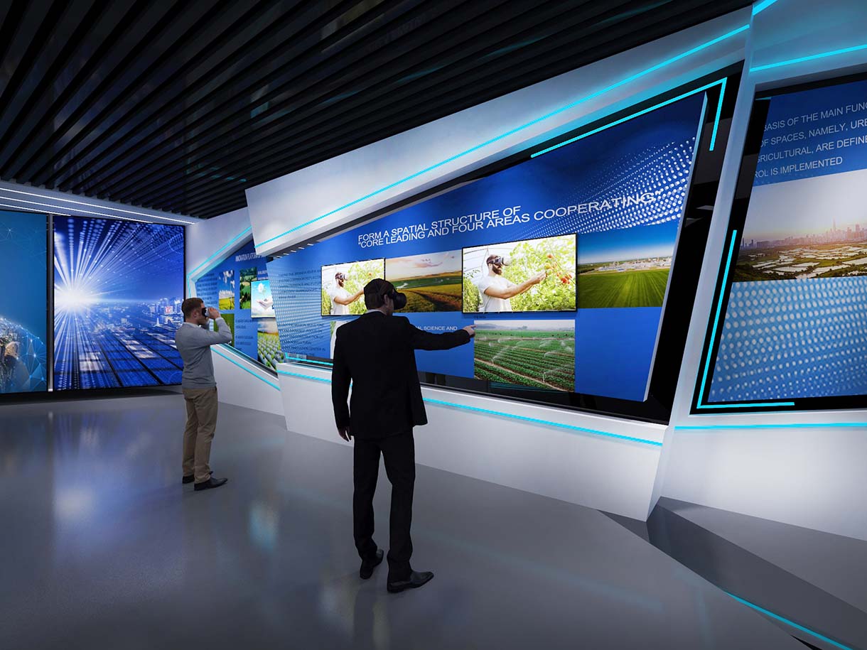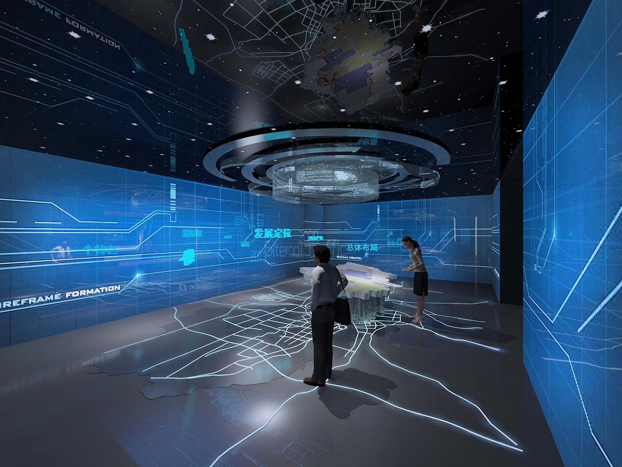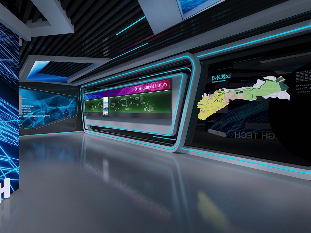 運用這些數字技術可以巧妙地將黃三角龍高區特有的地域文化與現代科技相結合,多方位運用互動多媒體數字展項、規劃類電子沙盤、全息投影技術、環幕顯示系統等創新數字展示手段,生動展現黃三角龍高區的"過去、現在",以及暢想黃三角龍高區的未來。