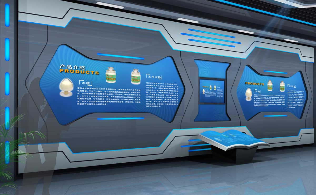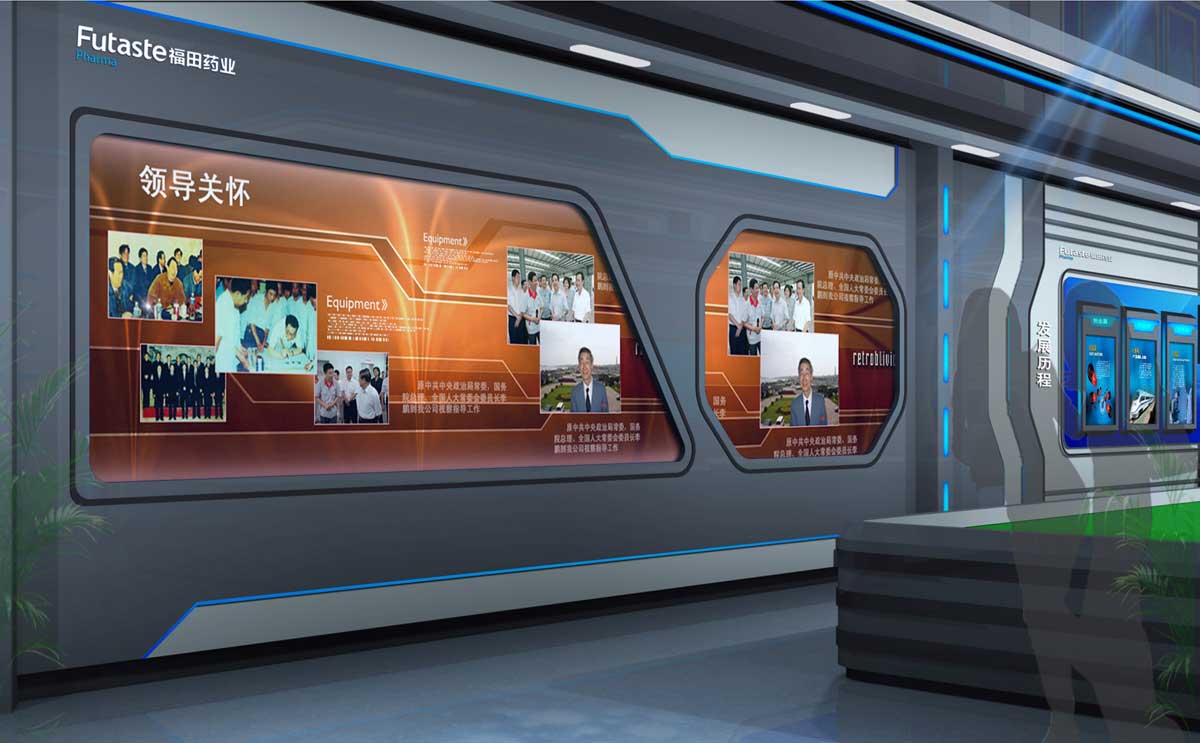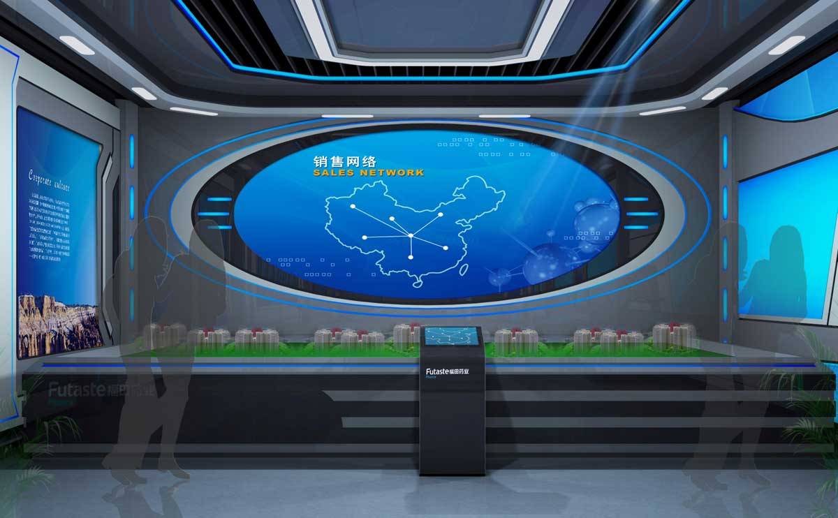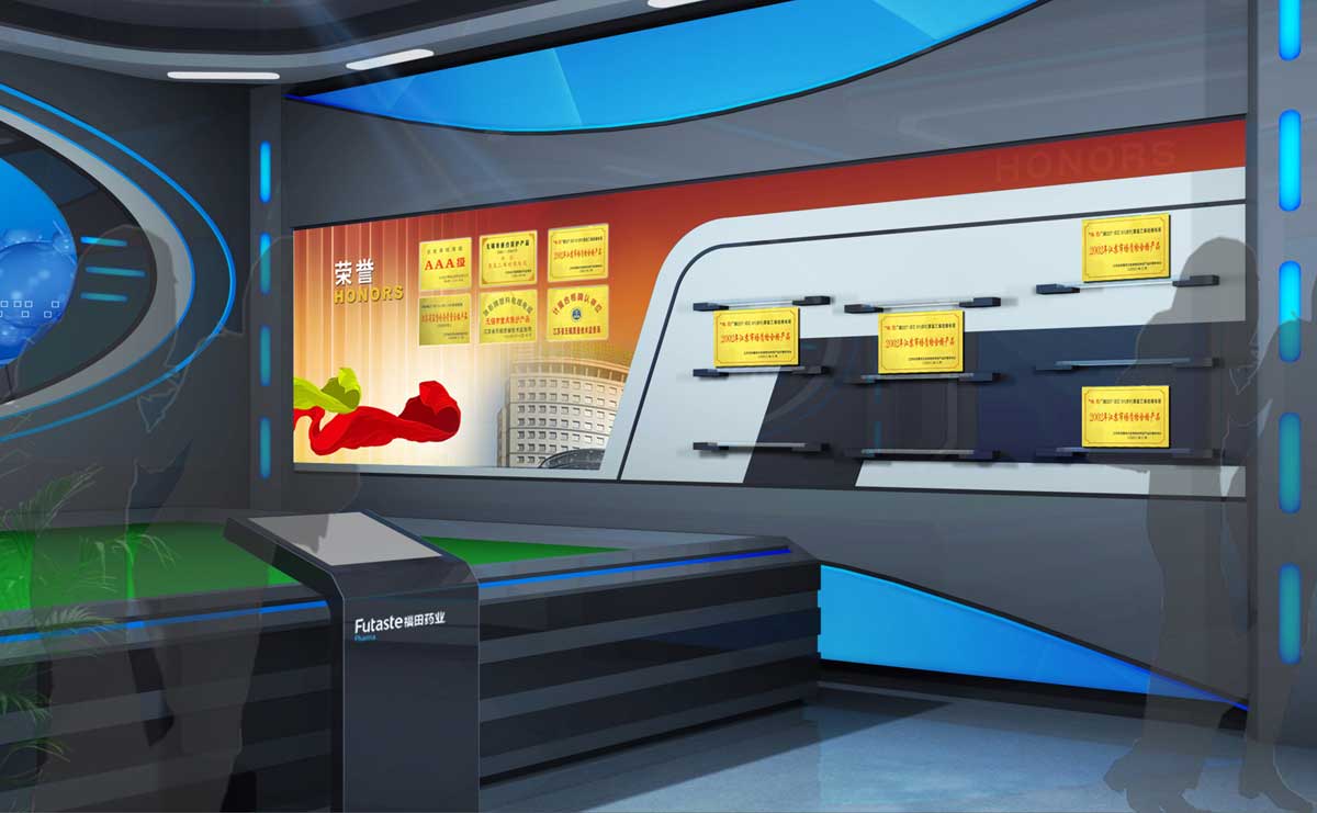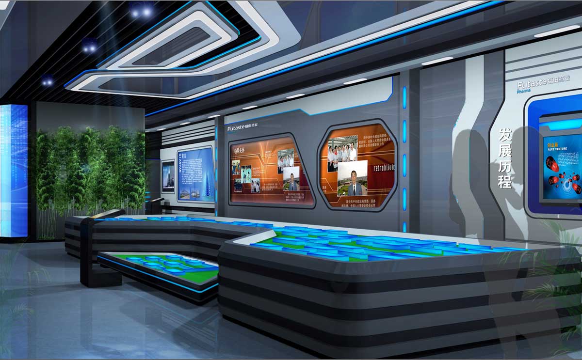 本次福田藥業功能糖科技館設計將運用智能、現代、藝術的展示手法,對福田功能糖進行深度解析,將科技與人文互相滲透,從企業的發展歷程、企業文化到銷售鏈由內而外的展示福田功能糖的優勢及前景,使展廳成為企業最佳的對外交流場地。