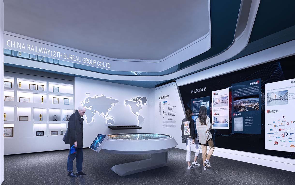 中鐵十二局集團展廳項目目標:中鐵十二局集團有限公司是中國鐵路建設的主力軍,對于本次展廳項目建設的目標是展現“不畏艱險 ,勇攀高峰 ,領先行業 ,創譽中外”的企業精神,以創新為根本動力推進企業發展,助力企業“走出去”戰略能更好的實施。
