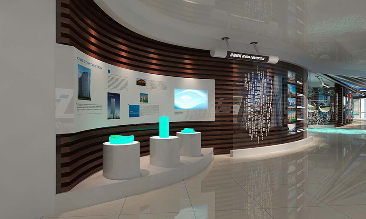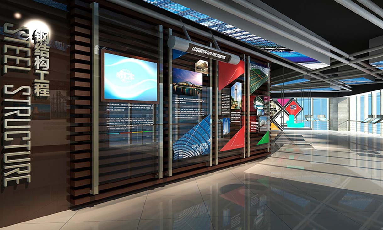 本次設計將以現場造型還原等手段,體現五治集團的優勢與實力,通過全息柜等手段還原項目造型,讓參觀者直觀的感受到工業力量。