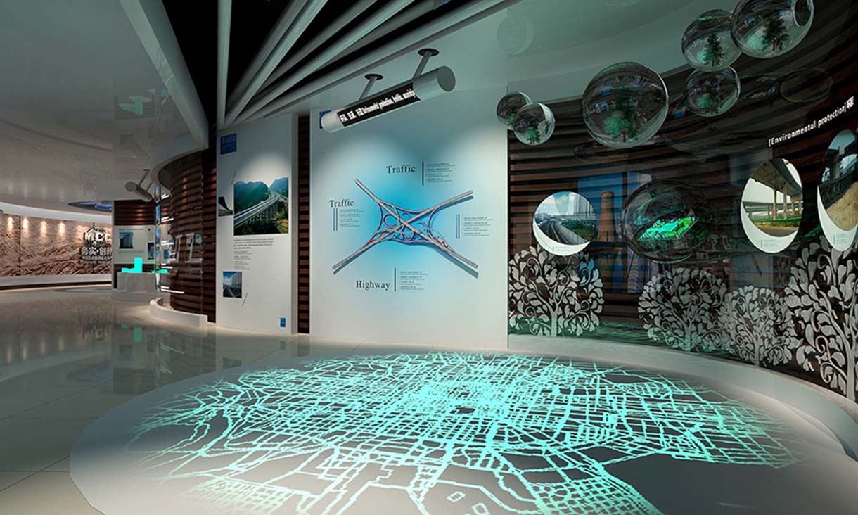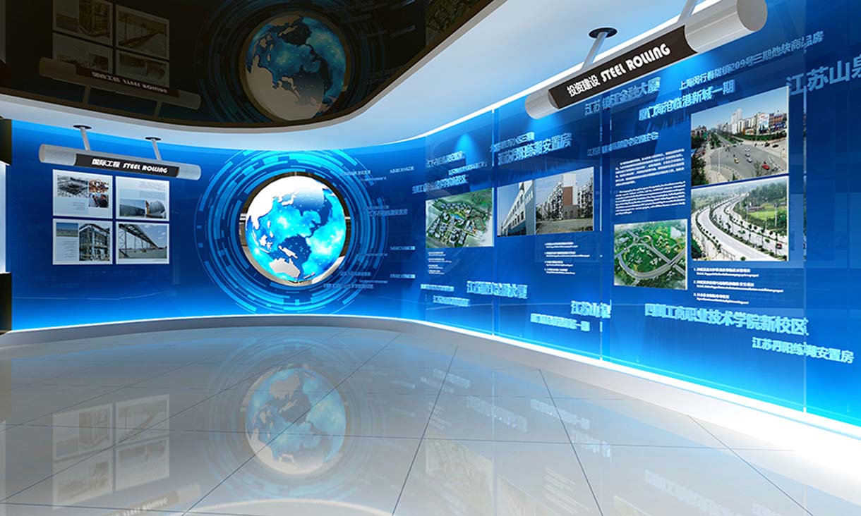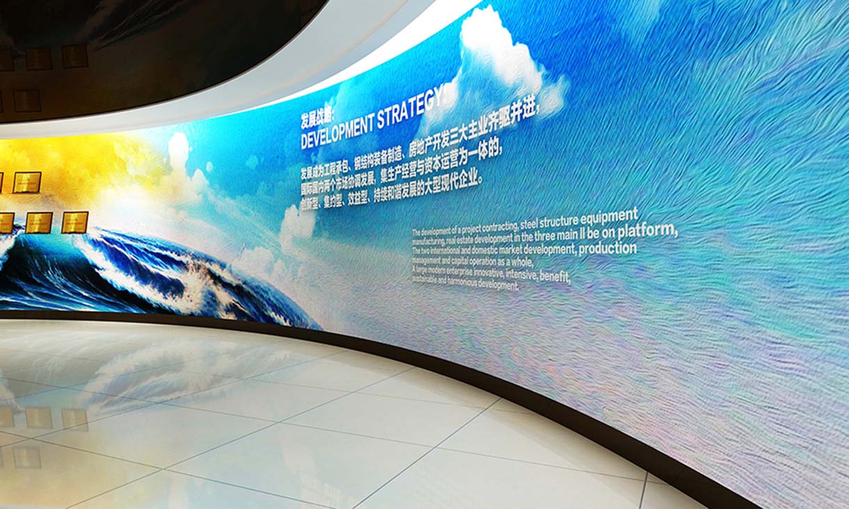本次展示設備將采用LED大型拼接屏+穹頂投影為主要展項,利用大版面播放企業宣傳片,充分展現五治集團的穩重及大氣,展示五治員工對社會的付出與奉獻。同時配合地面投影及全息柜增添展廳的趣味性及科技感。