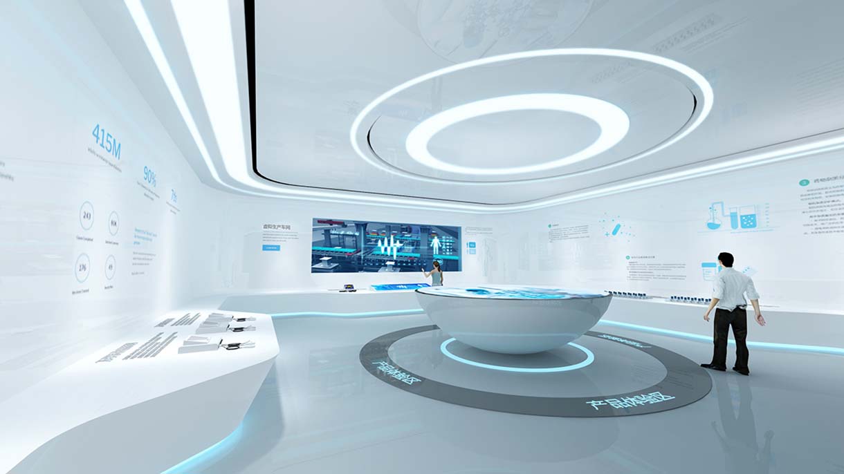 展廳中虛擬實驗室的運用,讓參觀者能全方位360°的查看產(chǎn)品的信息內(nèi)容;互動滑軌屏可通過滑動、旋轉(zhuǎn)、放大、縮小等交互動作查看產(chǎn)品的詳細(xì)信息;弧幕影院不僅能夠充分的展示展出內(nèi)容,還能夠讓參觀者有身臨其境的互動參觀體驗。
