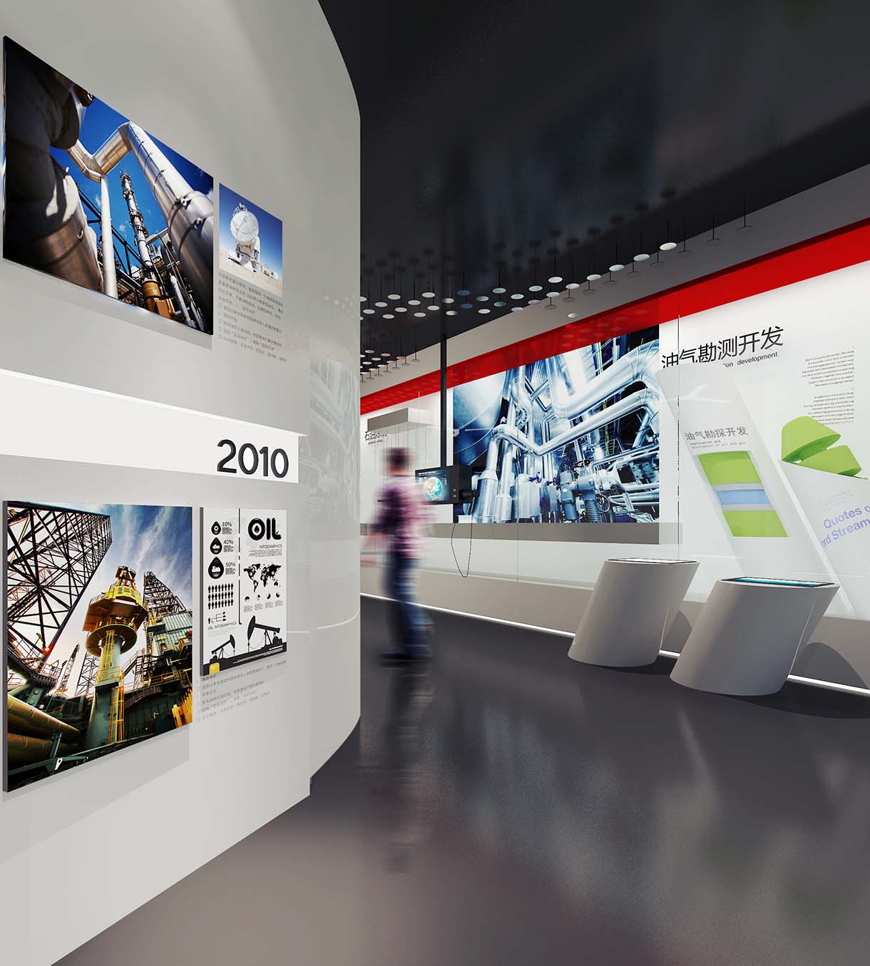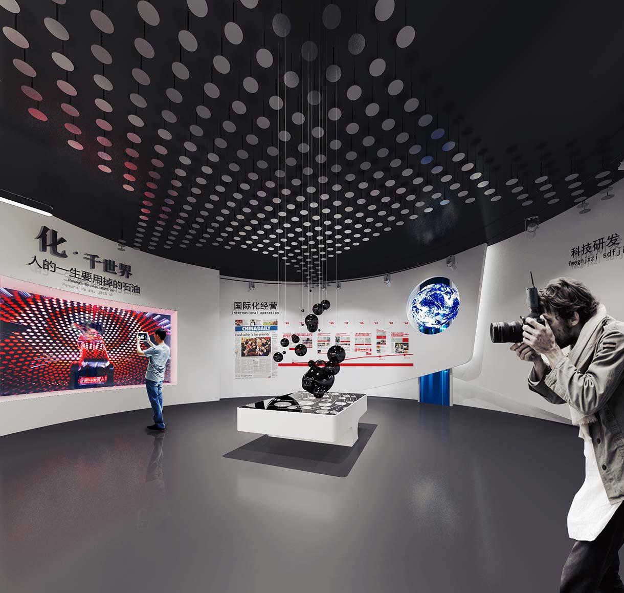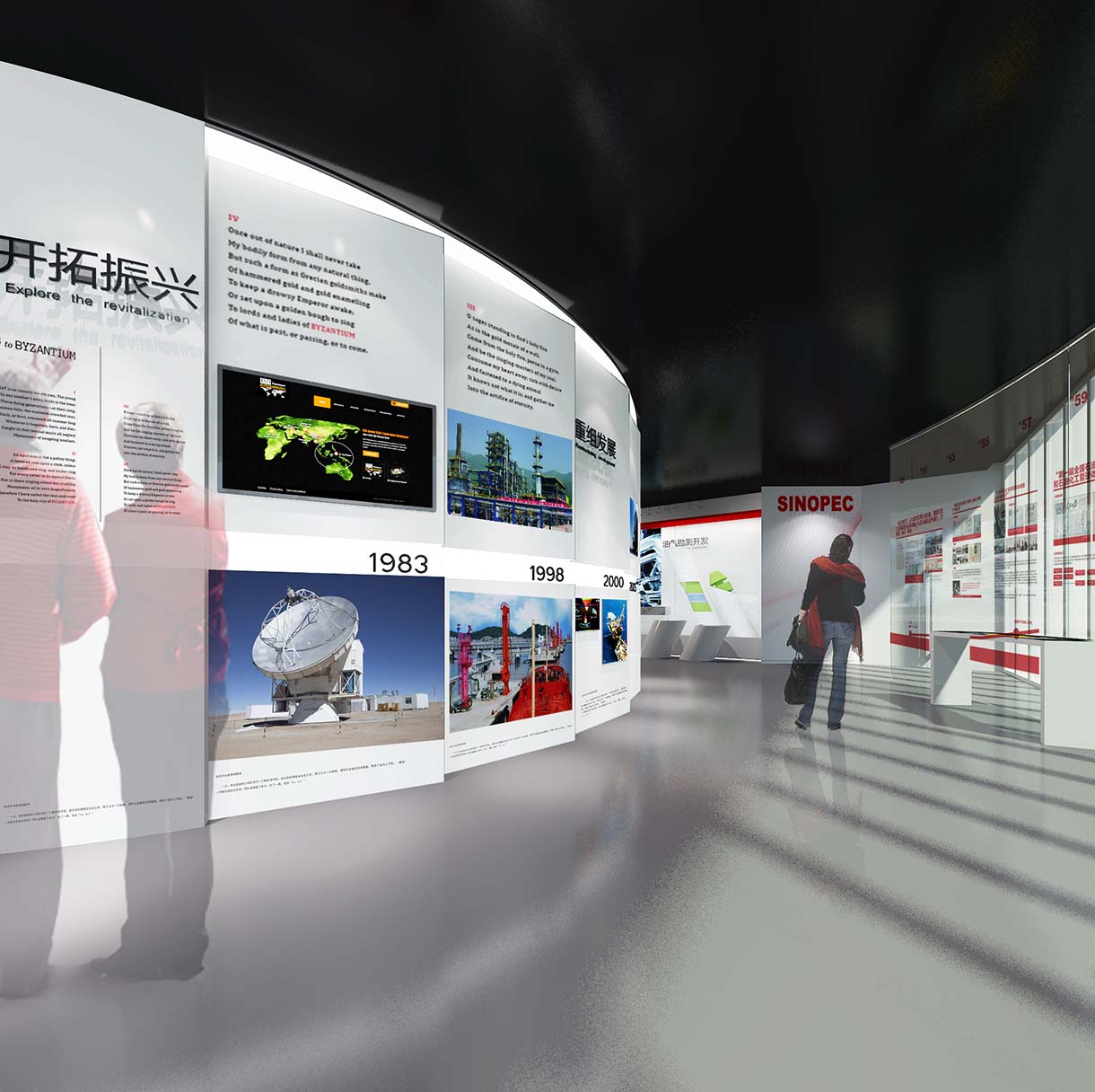 項目介紹:本項目是為中石化集團設計的企業文化展示空間,占地面積1000平方米,項目旨在為中石化集團打造一個沉穩、大氣、有科技感的企業文化展示空間。