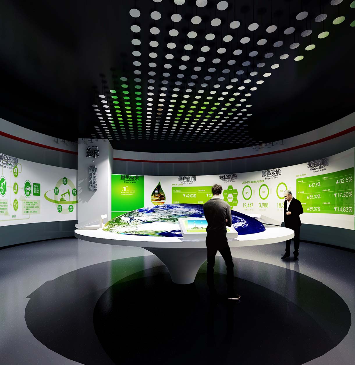 本項目采用LED現實屏為展示媒介,配合球幕投影及聲光電等設備的運用,打造出富有科技感的展示體驗,多角度展現中石化的企業實力。