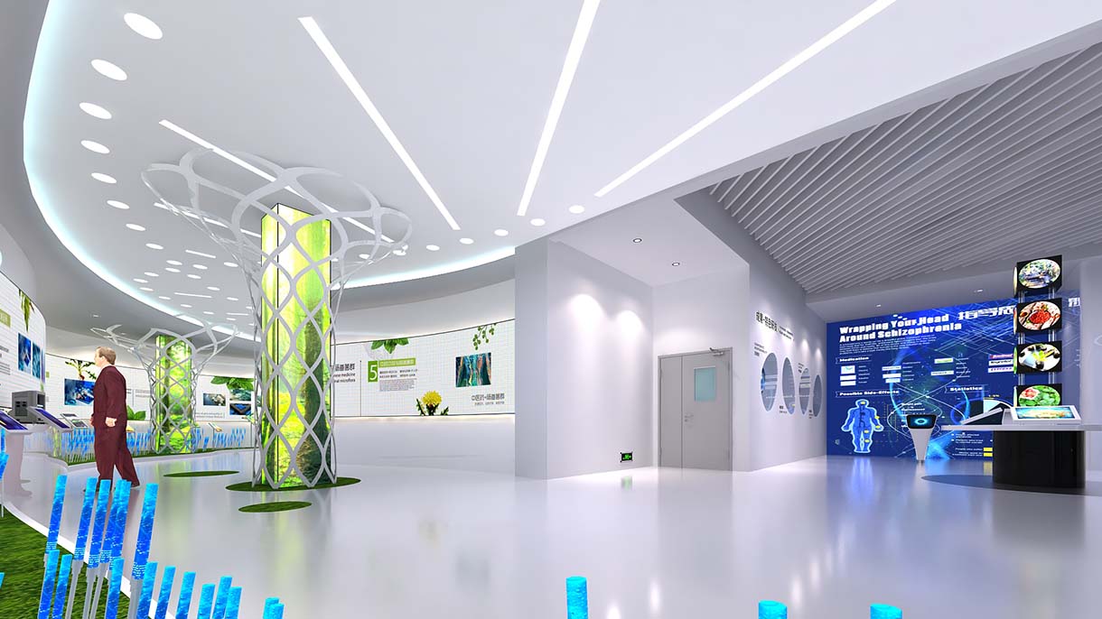 展廳設(shè)計(jì)策劃思路:整體空間簡(jiǎn)設(shè)計(jì)潔大氣,大立面大視角的圖文版面展陳康美20年來(lái)的發(fā)展業(yè)績(jī)。展區(qū)以象征生機(jī)的綠色與無(wú)限未來(lái)的白色為主要色調(diào),寓意著中醫(yī)藥健康發(fā)展的未來(lái)一片光明,選用淡雅溫柔的色調(diào)營(yíng)造出典雅的空間氛圍,貼合中醫(yī)藥文化的特性。