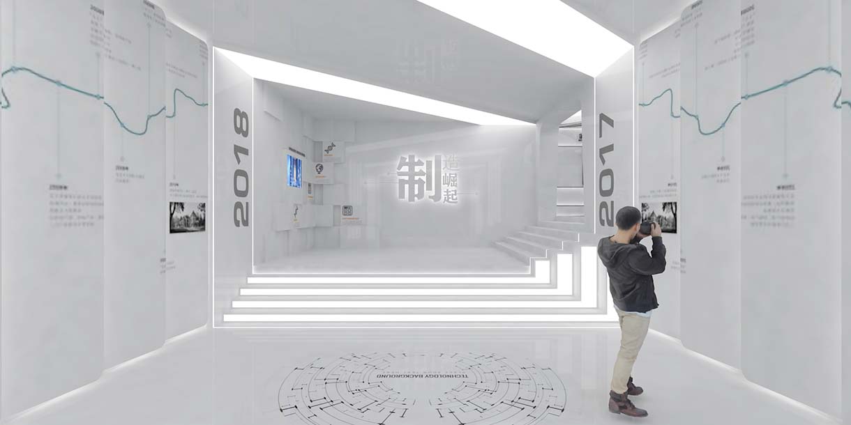 項目介紹:本項目是為智能制造企業設計的產品展示空間,占地面積680平方米,項目以企業發展史作為切入點,逐步引入產品展示空間,全方位展示企業實力。