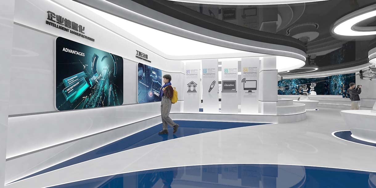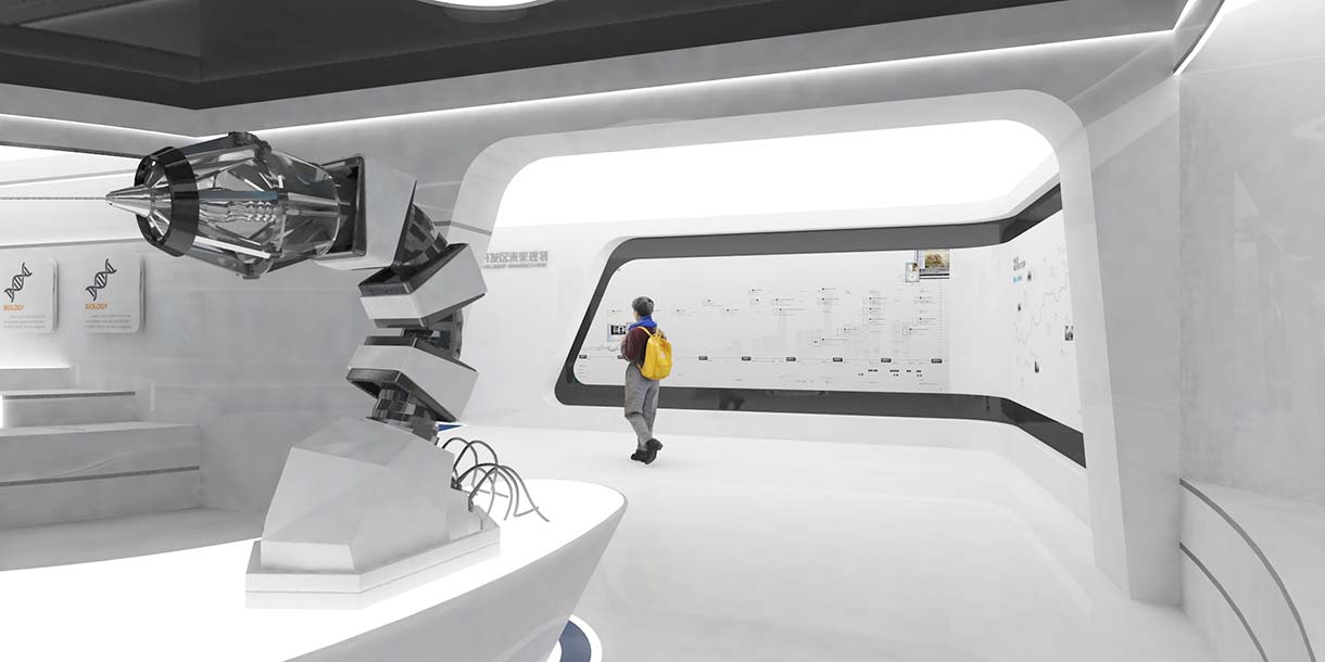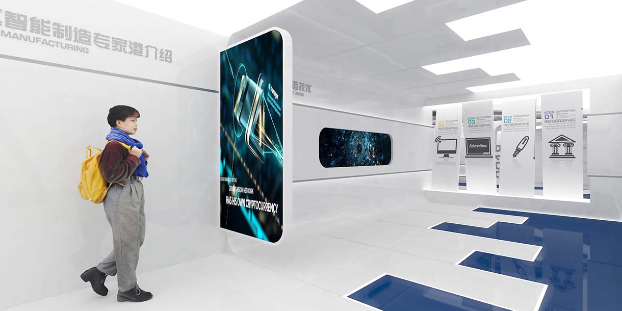 為貼合智能制造的企業形象,本次采用LED顯示屏+觸摸屏為展示載體,使用多元化的展示手段,充分利用展示空間,為企業塑造一個充滿科技感、藝術感的展示空間。