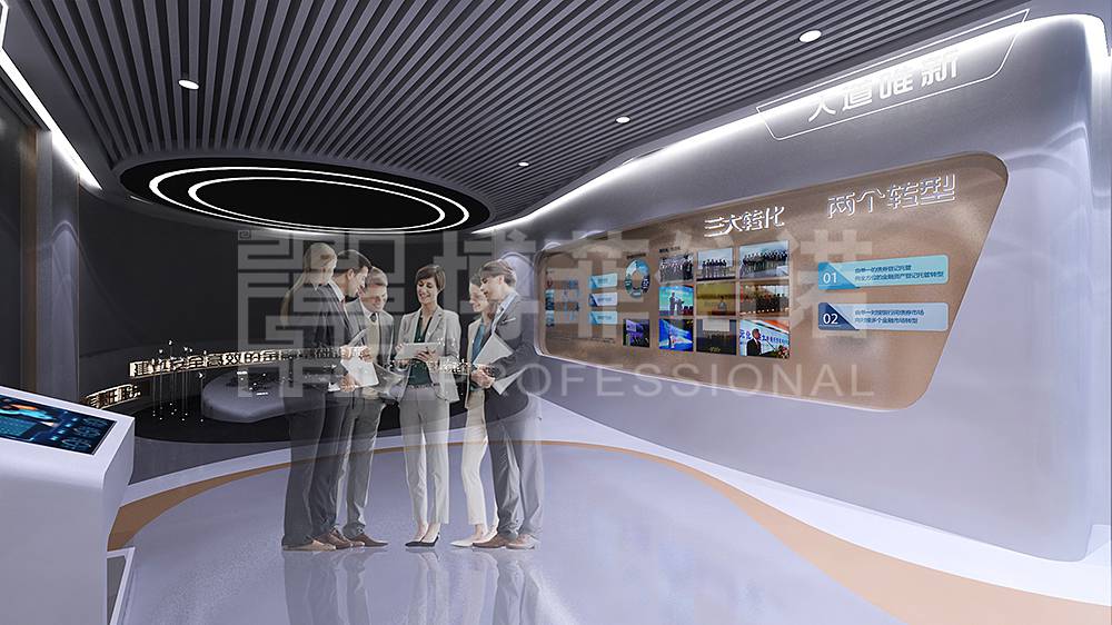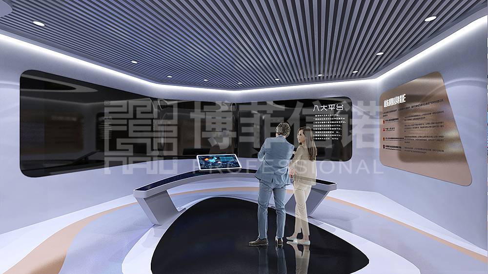 此外,展廳還設有展示臺、多媒體演示等設施,可供參觀者近距離了解公司的業務和產品,以及觀看相關宣傳視頻等。