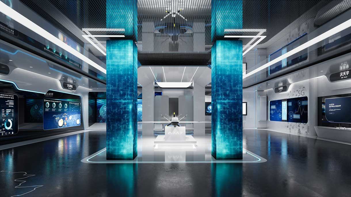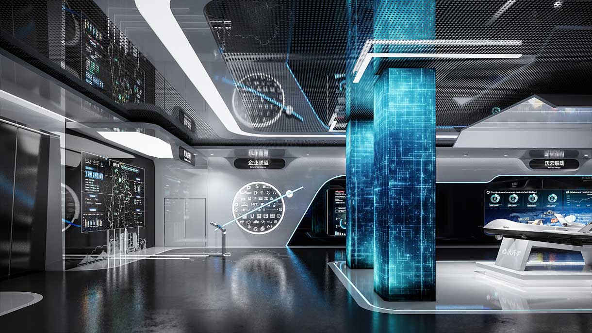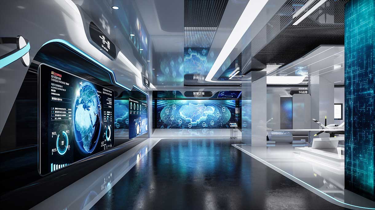 展廳設計策劃思路:展廳設計需讓體驗者感受聯通5G技術對人們日常生活、工作、娛樂方式的深層次改變。可以運用AR、VR、全息投影等多媒體展示技術,營造聯通通信5G展廳的科技感和未來感。