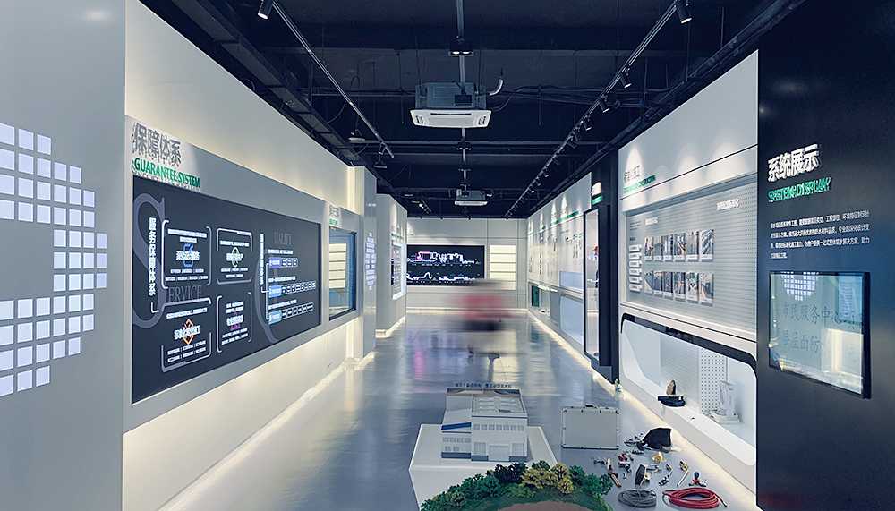 流動水簾設計,十分契合表現主題,又為展廳設計增加一絲靈動